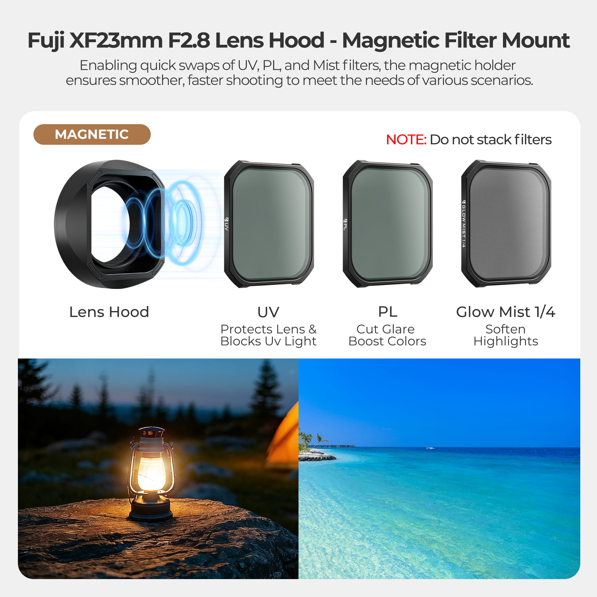 En resumen, el parasol Freewell para Fuji XF 23mm F 2.8 con filtros magnéticos y protección de vidrio templado es un accesorio esencial para los usuarios de Fujifilm que buscan protección, comodidad y mayor libertad creativa.